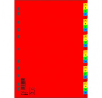 Przekładki plastikowe Donau PP A4 kolorowe numeryczne 1 - 30