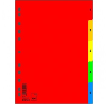 Przekładki plastikowe Donau PP A4 kolorowe numeryczne 1 - 5