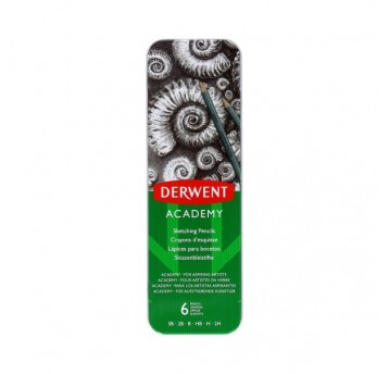 Ołówki Derwent Academy w pudełku metalowym 6 sztuk 3B-2H