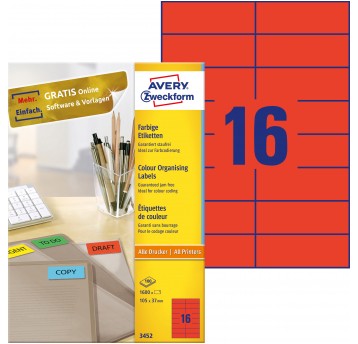 Etykiety trwałe kolorowe Avery Zweckform, A4, 100 ark./op., 105 x 37 mm, czerwone