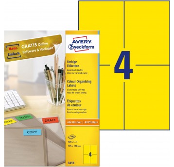 Etykiety trwałe kolorowe Avery Zweckform, A4, 100 ark./op., 105 x 148 mm, żółte