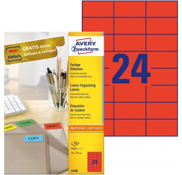 Etykiety trwałe kolorowe Avery Zweckform, A4, 100 ark./op., 70 x 37 mm, czerwone