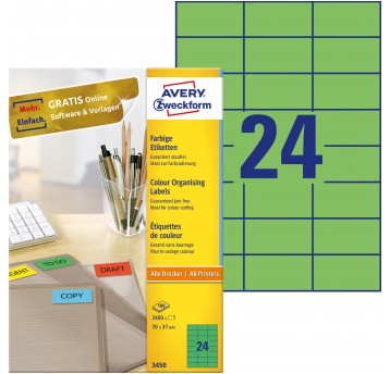 Etykiety trwałe kolorowe Avery Zweckform, A4, 100 ark./op., 70 x 37 mm, zielone