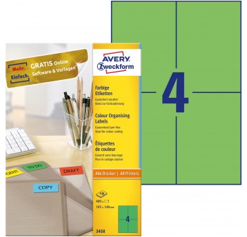 Etykiety trwałe kolorowe Avery Zweckform, A4, 100 ark./op., 105 x 148 mm, zielone