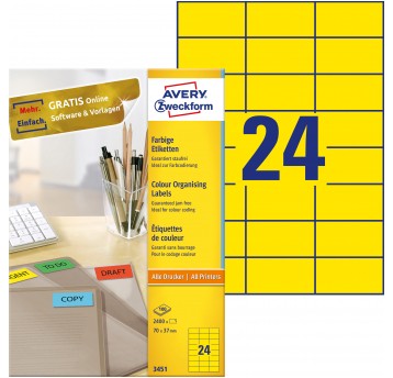 Etykiety trwałe kolorowe Avery Zweckform, A4, 100 ark./op., 70 x 37 mm, żółte