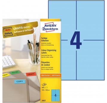 Etykiety trwałe kolorowe Avery Zweckform, A4, 100 ark./op., 105 x 148 mm, niebieskie