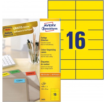 Etykiety trwałe kolorowe Avery Zweckform, A4, 100 ark./op., 105 x 37 mm, żółte