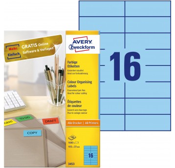 Etykiety trwałe kolorowe Avery Zweckform, A4, 100 ark./op., 105 x 37 mm, niebieskie