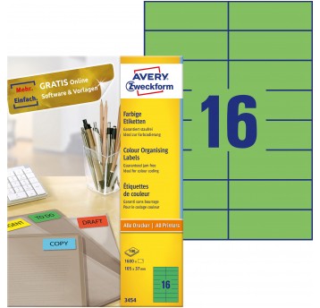 Etykiety trwałe kolorowe Avery Zweckform, A4, 100 ark./op., 105 x 37 mm, zielone