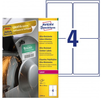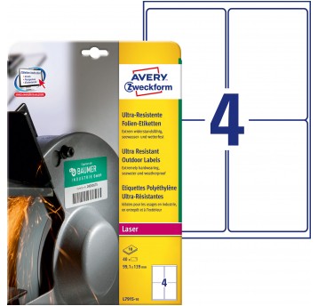Etykiety polietylenowe ultra resistant Avery Zweckform, A4, 40 ark./op., 99,1 x 139 mm, białe