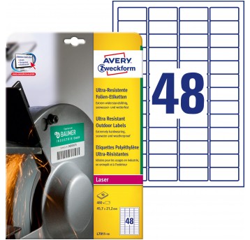 Etykiety polietylenowe ultra resistant Avery Zweckform, A4, 10 ark./op., 45,7 x 21,2 mm, białe