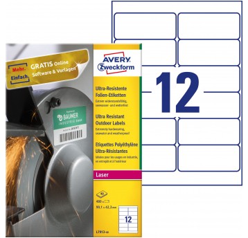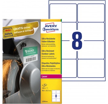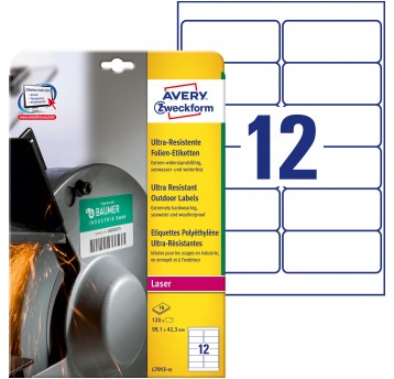 Etykiety polietylenowe ultra resistant Avery Zweckform, A4, 40 ark./op., 99,1 x 67,7 mm, białe