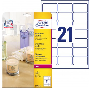 Etykiety przezroczyste Crystal Clear Avery Zweckform, A4, 25 ark./op., 63,5 x 38,1 mm