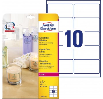 Etykiety przezroczyste Crystal Clear Avery Zweckform, A4, 25 ark./op., 96 x 50,8 mm