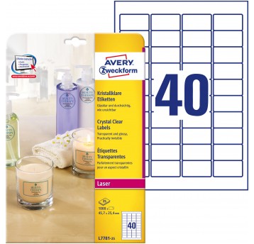 Etykiety przezroczyste Crystal Clear Avery Zweckform, A4, 25 ark./op., 45,7 x 25,4 mm