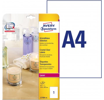 Etykiety przezroczyste Crystal Clear Avery Zweckform, A4, 25 ark./op., 210 x 297 mm
