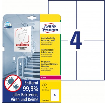 Folia samoprzylepna z powierzchnią antydrobnoustrojową Avery Zweckform, A4, 10 ark./op., 105x148 mm, biała