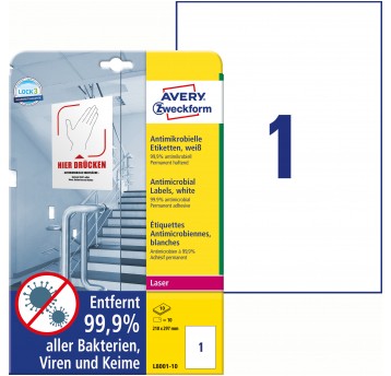 Folia samoprzylepna z powierzchnią antydrobnoustrojową Avery Zweckform, A4, 10 ark./op., 210x148 mm, biała