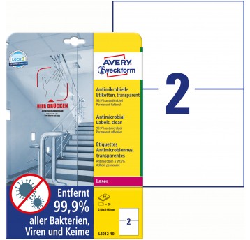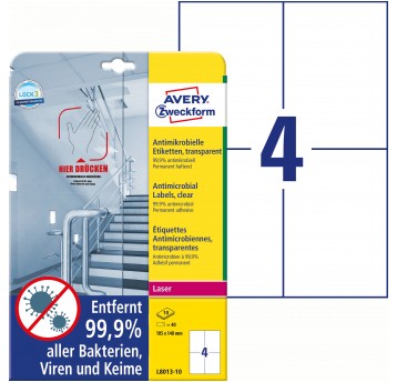 Folia samoprzylepna z powierzchnią antydrobnoustrojową Avery Zweckform, A4, 10 ark./op., 105 x 148 mm, przezroczysta