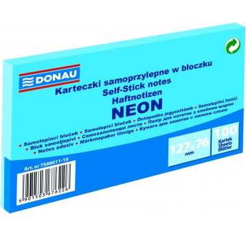 Karteczki samoprzylepne Donau 127 x 76 mm niebieski neon