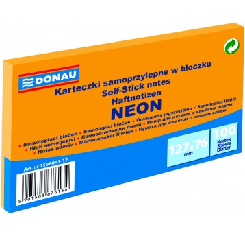 Karteczki samoprzylepne Donau 127 x 76 mm pomarańczowy neon