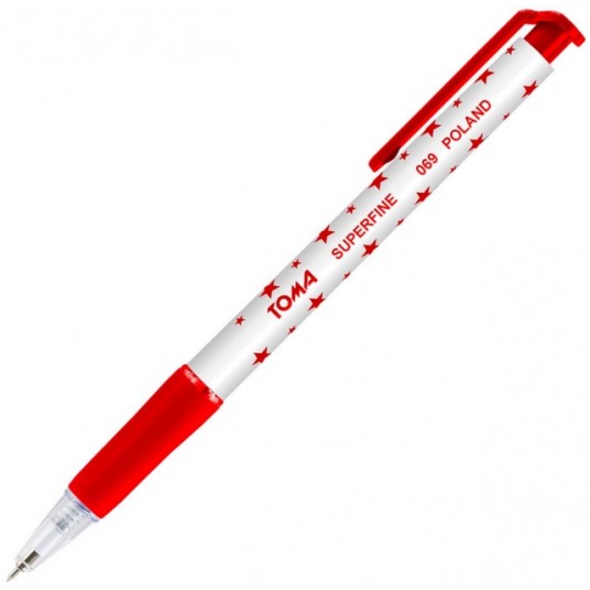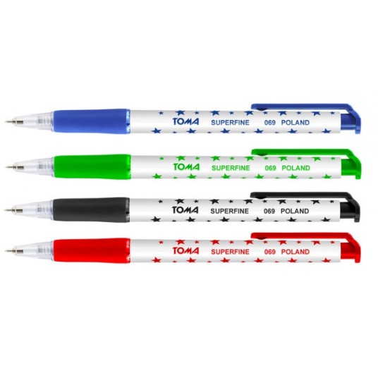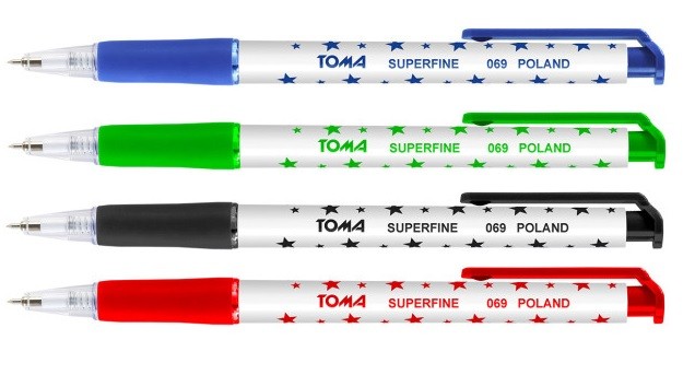 - w plastikowej obudowie w gwiazdki w kolorze tuszu - trwała kulka z węglików spiekanych 0,5 mm - trwały mechanizm włączający - wygodny, gumowany uchwyt - 4 kolory tuszu - wkład - szwajcarska technologia Floating Ball System