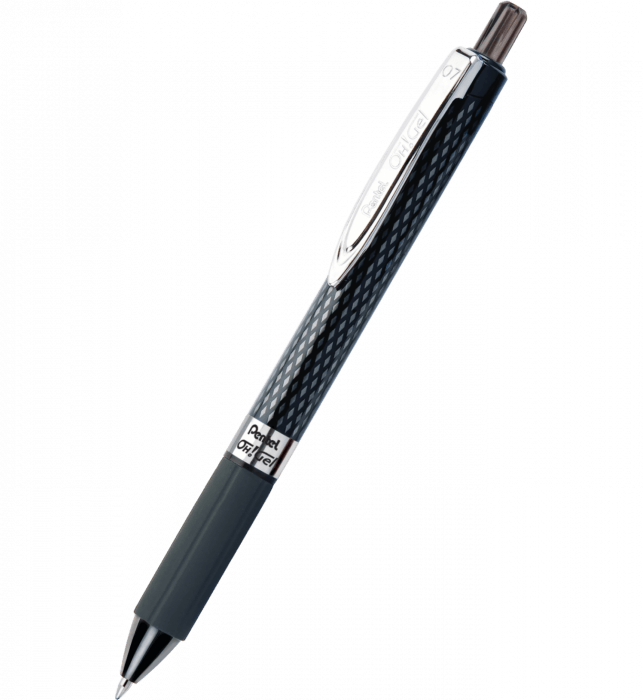 Długopis żelowy OH! Gel do częstego pisania w biurze i szkole. Bezkwasowy, pigmentowy, szybkoschnący tusz żelowy o bardzo ciemnym kolorze, nie blaknie, nie rozmazuje się, jest odporny na szkodliwe działanie czynników zewnętrznych (jest światło- i wodoodporny). Gładki przepływ tuszu do końcówki zapewnia lekkie pisanie. Korpus z motywami rombu w ciemnej stylistyce tła ze srebrnymi wykończeniami. Solidna obudowa dopasowuje się do ręki – gumowy uchwyt (bez lateksu) zabezpiecza palce przed ślizganiem. Dostępny w trzech wyrazistych kolorach: czarnym, niebieskim, czerwonym. Na wkłady wymienne KFR7. Model w atrakcyjnej cenie.