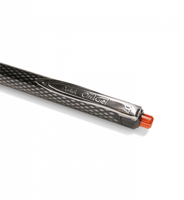 Długopis żelowy OH! Gel do częstego pisania w biurze i szkole. Bezkwasowy, pigmentowy, szybkoschnący tusz żelowy o bardzo ciemnym kolorze, nie blaknie, nie rozmazuje się, jest odporny na szkodliwe działanie czynników zewnętrznych (jest światło- i wodoodporny). Gładki przepływ tuszu do końcówki zapewnia lekkie pisanie. Korpus z motywami rombu w ciemnej stylistyce tła ze srebrnymi wykończeniami. Solidna obudowa dopasowuje się do ręki – gumowy uchwyt (bez lateksu) zabezpiecza palce przed ślizganiem. Dostępny w trzech wyrazistych kolorach: czarnym, niebieskim, czerwonym. Na wkłady wymienne KFR7. Model w atrakcyjnej cenie.
