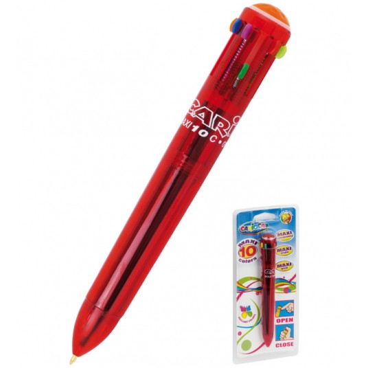 – stworzony z myślą o dzieciach – automatyczny – 10 różnokolorowych wkładów – wykonany z ABS – jaskrawe, transparentne kolory obudowy – tusz wodoodporny – długość pisania: 1200 m x 10 – grubość linii 1 mm – opakowanie zawiera blister, 18 sztuk w pudełku