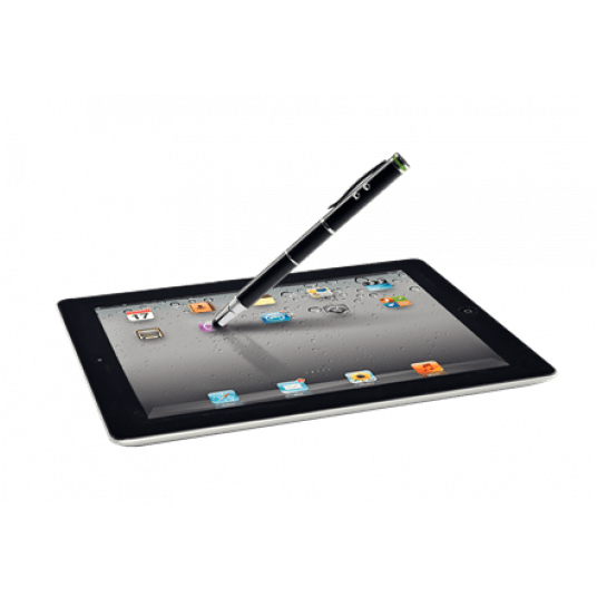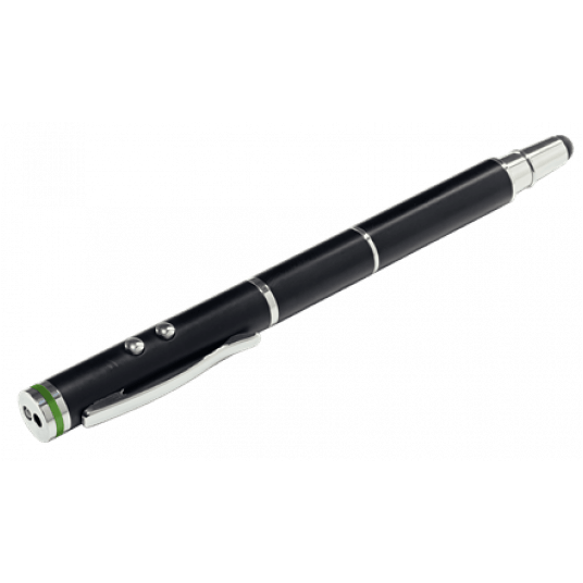 - jeden długopis - 4 funkcje: rysik do ekranów, długopis, wskaźnik laserowy i latarka LED - miękka końcówka silikonowa zapobiega zarysowaniom - chroni ekran urządzenia przed odciskami palców - wysokiej jakości długopis (wymienny wkład) - wbudowany laserowy wskaźnik do prezentacji - zintegrowana latarka LED - zawiera 3 baterie G3/LR 41