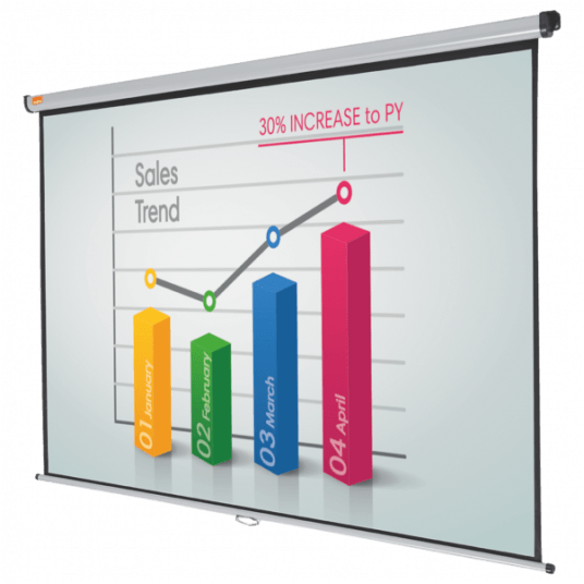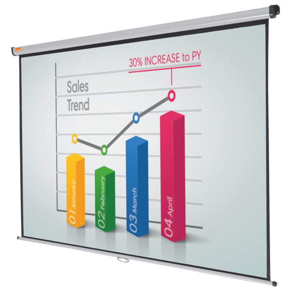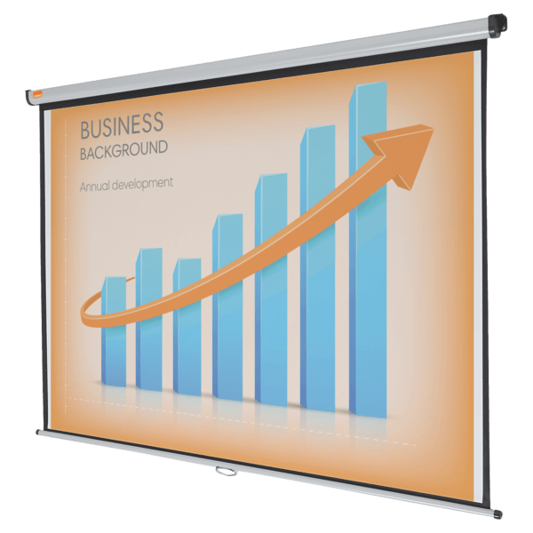 Doskonała biała matowa powierzchnia ekranów Nobo zapewnia wyraźny i szczegółowy obraz, który bez problemu będzie widoczny dla wszystkich widzów. Ekran można z łatwością schować do pokrowca, aby ochronić go przed uszkodzeniami lub na czas przechowywania. Dzięki dodatkowym opcjonalnym wysięgnikom ekran może być zamontowany nad tablicą suchościeralną lub skierowany w stronę widzów. Rozmiar 2000 mm x 1513 mm.