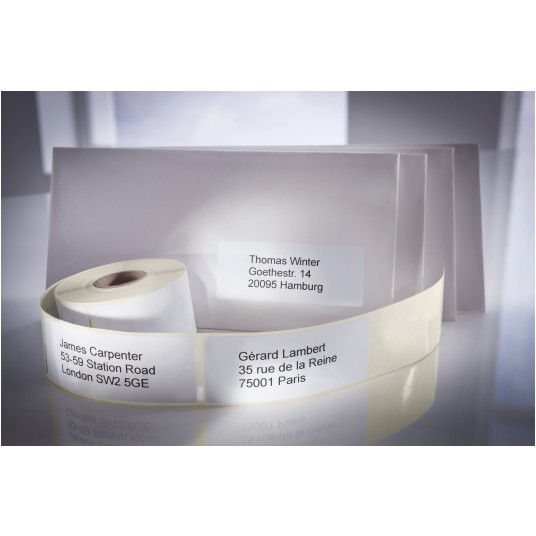 • Etykiety adresowe Avery Zweckform w rolce do drukarek termicznych • Są w 100% kompatybilne z: Dymo LW310; Dymo LW330T, LW400 Seria, LW450 Seria • Rozmiar: 25 x 54 mm • Klej: trwały • 1 rolka/op. • 500 etykiet/rolka • Kolor: białe • Gwarancja niezawodnego zadruku i pewnego przylegania etykiety • Idealne do wydruku oznaczeń wysyłkowych lub kodów kreskowych