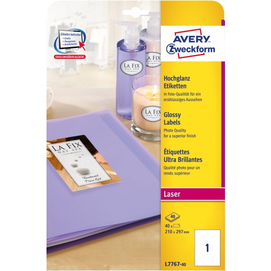 Etykiety błyszczące Avery Zweckform, A4, 40 ark./o