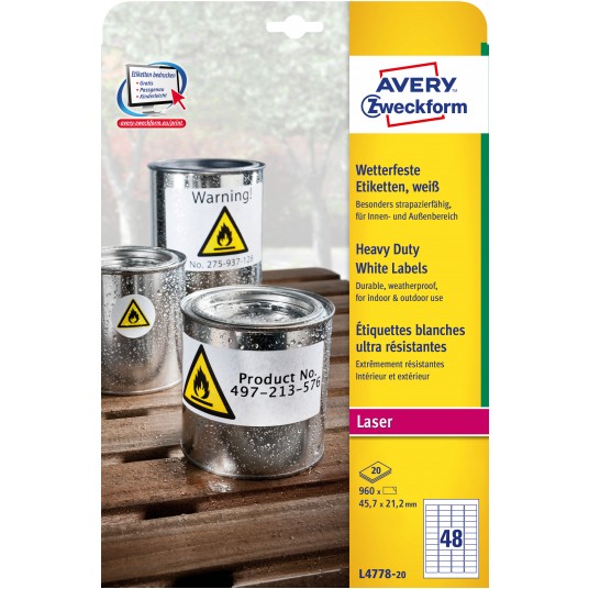 • Niezwykle wytrzymałe etykiety samoprzylepne wykonane z białego poliestru.