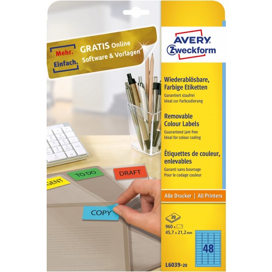 Etykiety usuwalne kolorowe Avery Zweckform, A4, 20