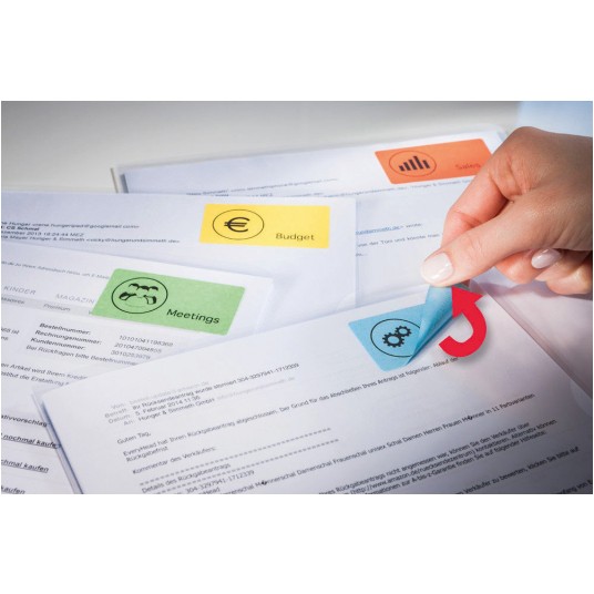 • Doskonale nadają się do czasowego, tematycznego oznaczania dokumentów oraz sprzętów biurowych.