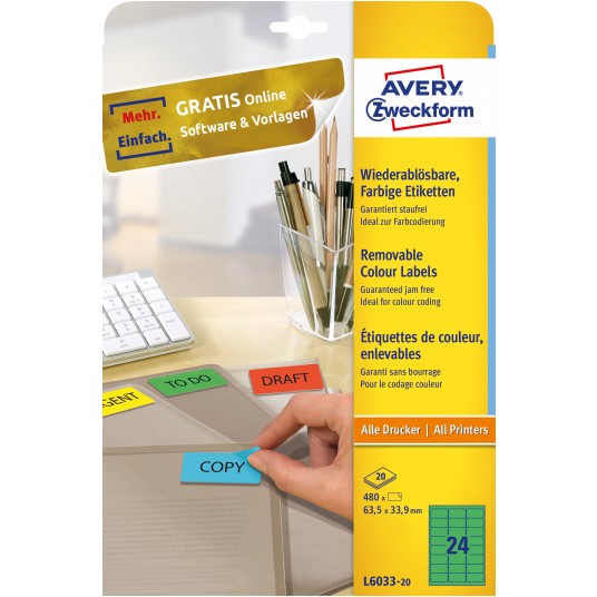 Etykiety usuwalne kolorowe Avery Zweckform, A4, 20