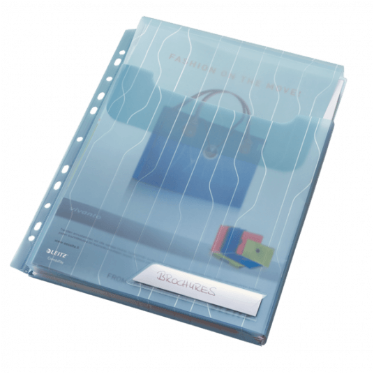 Folder o cechach ofertówki i koszulki z unikalnym składanym paskiem z otworami do wpięcia w segregator. Harmonijkowy brzeg zwiększa pojemność o 20 mm i umożliwia wkładanie obszernych dokumentów i katalogów. Zamykany klapką od góry dla zabezpieczenia dokumentów przed wypadaniem. Atrakcyjne wzornictwo i tłoczenie na folii polipropylenowej. Grubość 200 mic. Format A4. 3 sztuki w opakowaniu.