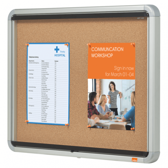 Jeżeli Twoje ogłoszenia wymagają zabezpieczenia, gabloty te będą idealnym rozwiązaniem. Przeznaczone do użytku zarówno w pomieszczeniach, jak i na zewnątrz. Wyposażone w szklany front o grubości 4 mm i zamek z kluczem - zapewniają bezpieczeństwo umieszczonych w nich informacji. Szklana gablota wewnętrzna. Korkowa. Format 4 x A4.