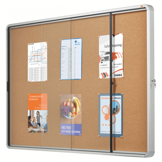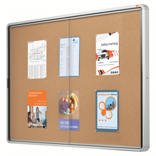Jeżeli Twoje ogłoszenia wymagają zabezpieczenia, gabloty te będą idealnym rozwiązaniem. Przeznaczone do użytku zarówno w pomieszczeniach, jak i na zewnątrz. Wyposażone w szklany front o grubości 4 mm i zamek z kluczem - zapewniają bezpieczeństwo umieszczonych w nich informacji. Szklana gablota wewnętrzna. Korkowa. Format 18 x A4.