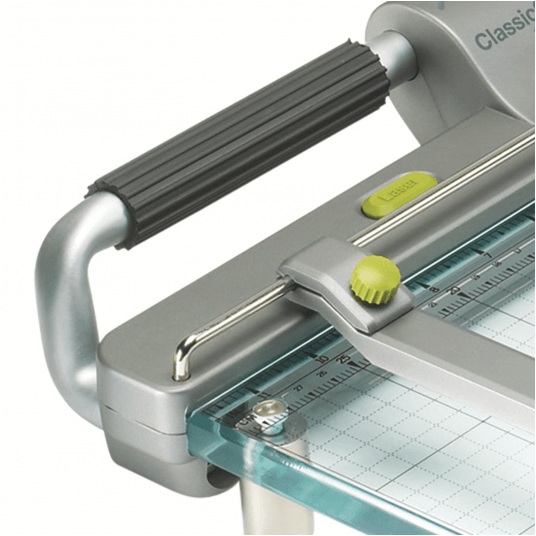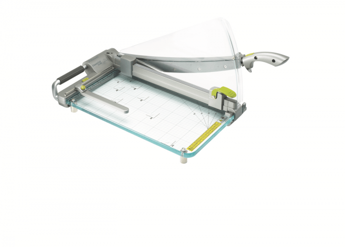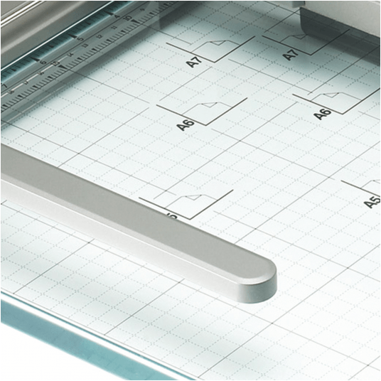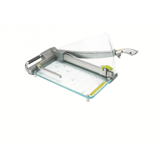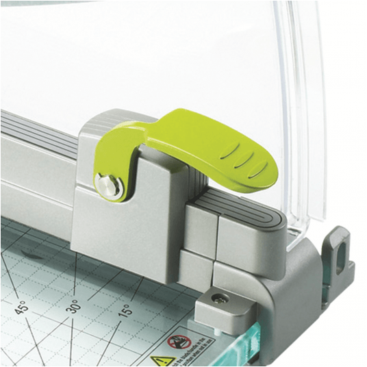 - tną jednorazowo do 25 kartek (80 gsm) - wyposażona w technologię światła laserowego zapewniającego bezpieczne i precyzyjne cięcie - wytrzymała przezroczysta podstawa z zaznaczonymi liniami siatki, podziałką metryczną oraz oznaczeniami formatów A3, A4, A5 i A6 pomocnymi przy wyrównywaniu papieru - regulowana prowadnica krawędzi papieru dla idealnego wyrównania i precyzyjnego cięcia - wyposażona w zintegrowany uchwyt oraz rączkę do przenoszenia - model CL 420 długość cięcia 467mm do formatu A3