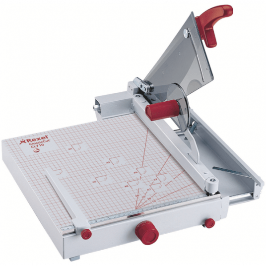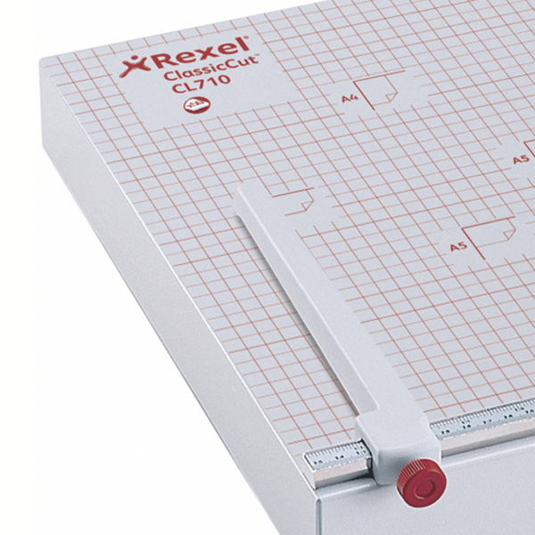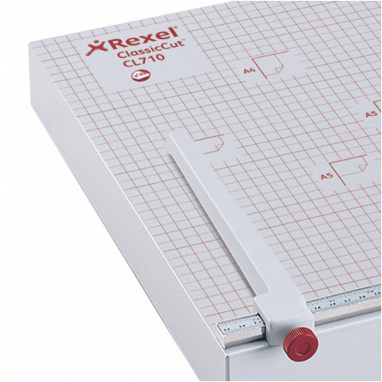 Solidna, metalowa gilotyna ClassicCut ™ CL710 to najwyższej klasy profesjonalna gilotyna w formacie A4. Idealna do biur o dużych potrzebach w zakresie cięcia. Dzięki ochronnej osłonie tnie bezpiecznie do 50 kartek. Licznie zaznaczone linie siatki i prowadnice papieru zapewniają dokładne cięcie za każdym razem.