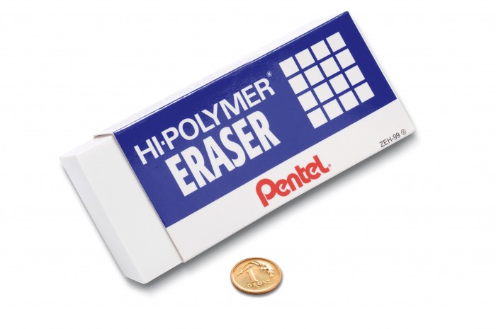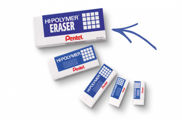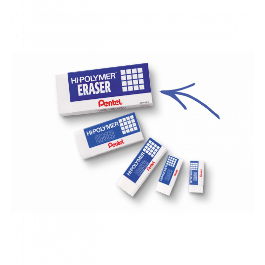 Bardzo popularna na całym świecie gumka ołówkowa Hi-Polymer. Wyjątkowo giętka i miękka, działa bez potrzeby mocnego dociskania do powierzchni. Nie narusza struktury papieru, pozostawia zeszyty, dokumenty oraz notatki w doskonałym stanie. Nie pęka, nie twardnieje, nie brudzi się. Pozostawia małą ilość ścinek. Nie zawiera szkodliwych substancji. Jest bezpieczna dla dzieci.