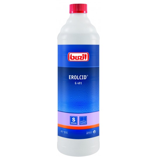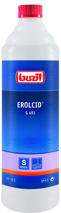 Specjalistyczny środek o niskim pH na bazie kwasu fosforowego do czyszczenia gruntownego i intensywnego nawierzchni mikroporowatych, odpornych na działanie kwasów. Szczególnie zalecany do gresu i do płytek antypoślizgowych. Spontanicznie usuwa naloty cementowe, wapienne oraz rdzę. Odpowiedni do stosowania w automatach myjących i szorowarkach. Wraz z zasadowym produktem do mycia gruntownego G 490 EROL tworzy perfekcyjnie dobrany system o doskonałej efektywności. Ujęty na liście RK.