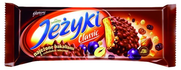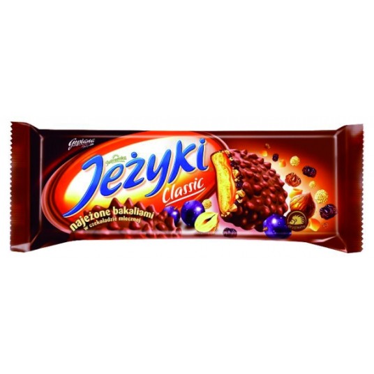 czekolada mleczna 35,5% [cukier, tłuszcz kakaowy, mleko w proszku pełne, miazga kakaowa, tłuszcze roślinne (palmowy, shea) w zmiennych proporcjach, serwatka w proszku - z mleka, emulgatory - lecytyny sojowe i E 476, aromat], mąka pszenna, cukier, syrop glukozowy, syrop cukru inwertowanego, chrupki ryżowe 6,3% (mąka ryżowa, pszenna i kukurydziana, cukier, koncentrat słodu jęczmiennego, sól), tłuszcz palmowy, mleko zagęszczone, rodzynki (3,3%), orzechy laskowe (3,3%), masło (z mleka), substancja utrzymująca wilgoć (syrop sorbitolowy), ekstrakt słodowy (z jęczmienia), skrobia, serwatka w proszku (z mleka), sól, emulgatory (lecytyny sojowe, E 471), substancje spulchniające (E 503, E 500, E 450), aromat.