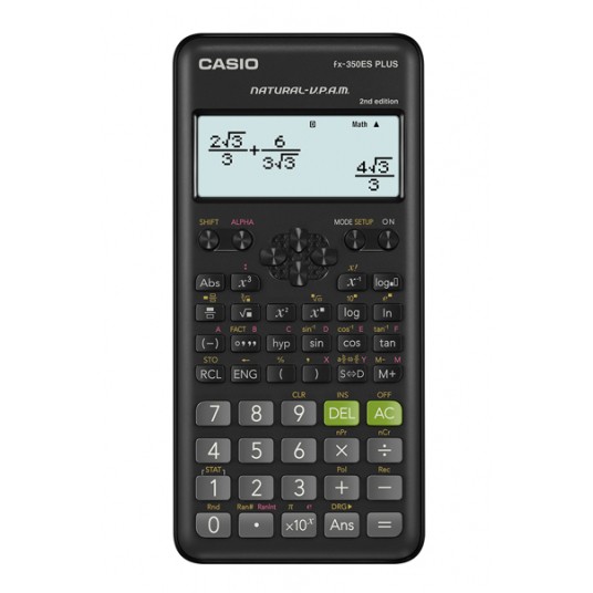 – Funkcje obliczeniowe: funkcja powtarzania, pamięć 9 zmiennych, 252 funkcji, 24 poziomów nawiasów, ułamki zwykłe, kąty w DEG/RAD/GRAD i konwersja między jednostkami, funkcje trygonometryczne i hiperboliczne, wykładnik, log, In, 10 x, e x, funkcje matematyczne x2, x –1, 1/x, x!, x y, x 1/y, obliczenia w systemie sześćdziesiętnym < > dziesiętnym, rozkład na czynniki pierwsze, notacja inżynierska ENG/ENG, generator liczb losowych, tabela funkcji, odchylenie standardowe, regresja, permutacje (nPr), kombinacje (nCr)