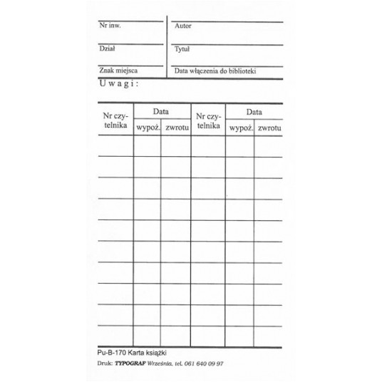 Karta książki Typograf B170 A7