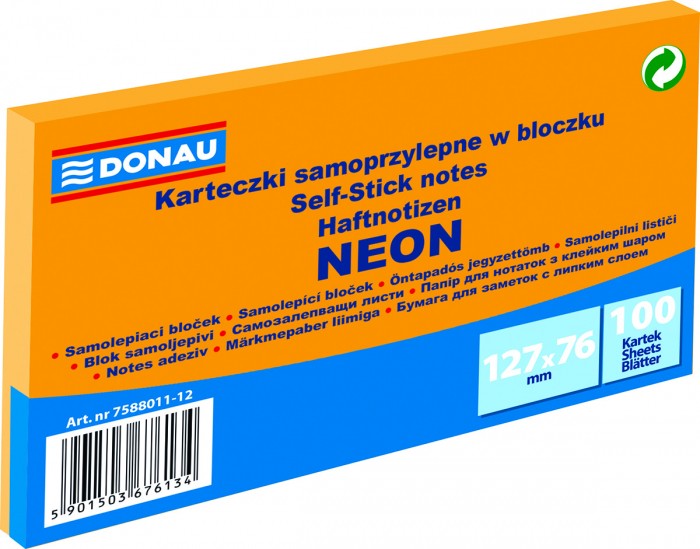 Karteczki samoprzylepne Donau 127 x 76 mm pomarańc