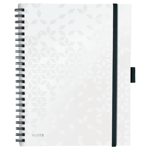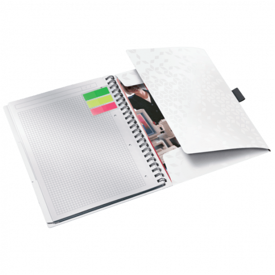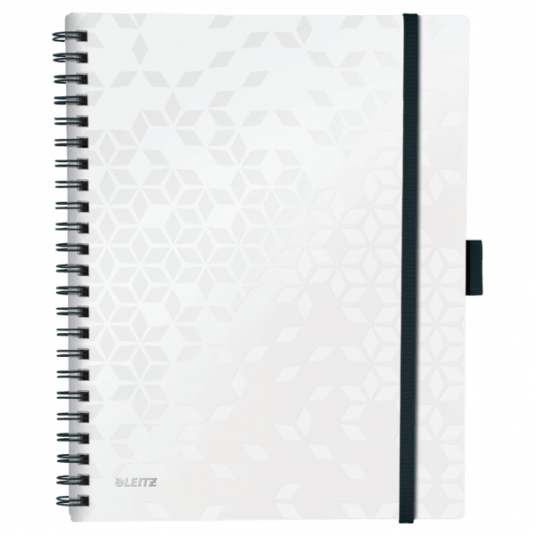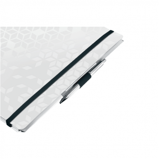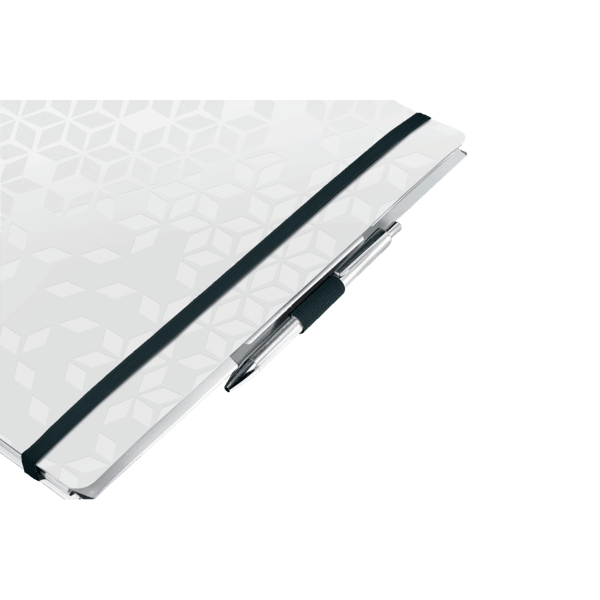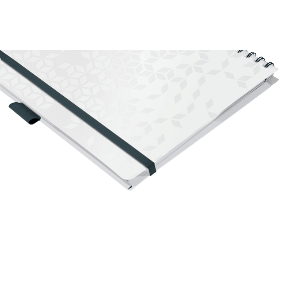 Zaprojektowany w żywych kolorach, z eleganckim geometrycznym wzorem na okładce. Mieści 80 kartek. Mikroperforacja i 4 dziurki do wpinania w segregator. Ze zintegrowaną teczką i uchwytem na długopis.