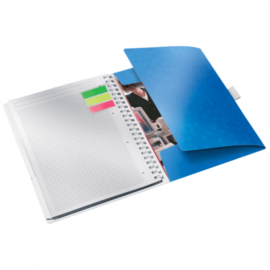- zintegrowana z tylną okładką 3-skrzydłowa teczka do przechowywania większej ilości luźnych dokumentów